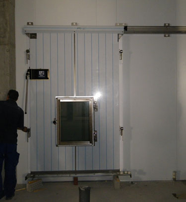 Porta corredissa industrial hermètica model GTH4 per a cambres d'atmosfera controlada.