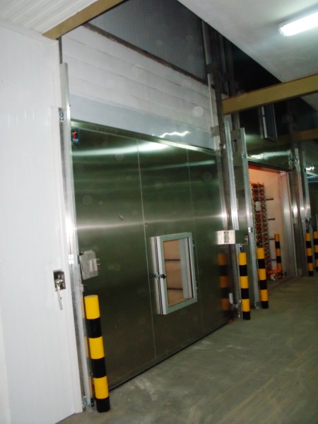 Porta vertical industrial hermètica per a cambres d'atmosfera controlada.