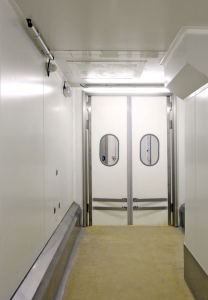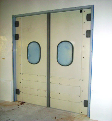 Porta industrial pivotant de doble acció amb planxa de Polietilè amb gruix de 15 mm. Porta vaivé per a la separació de zones de treball. Material molt resistent als impactes de carros, cops, etc ... Frontisses estàndards en acer inoxidable per a un trànsit intens. Disponible en: 1 o 2 fulles