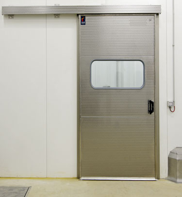 Porta industrial corredissa semi-hermètica T1 per a separació de naus de treball.